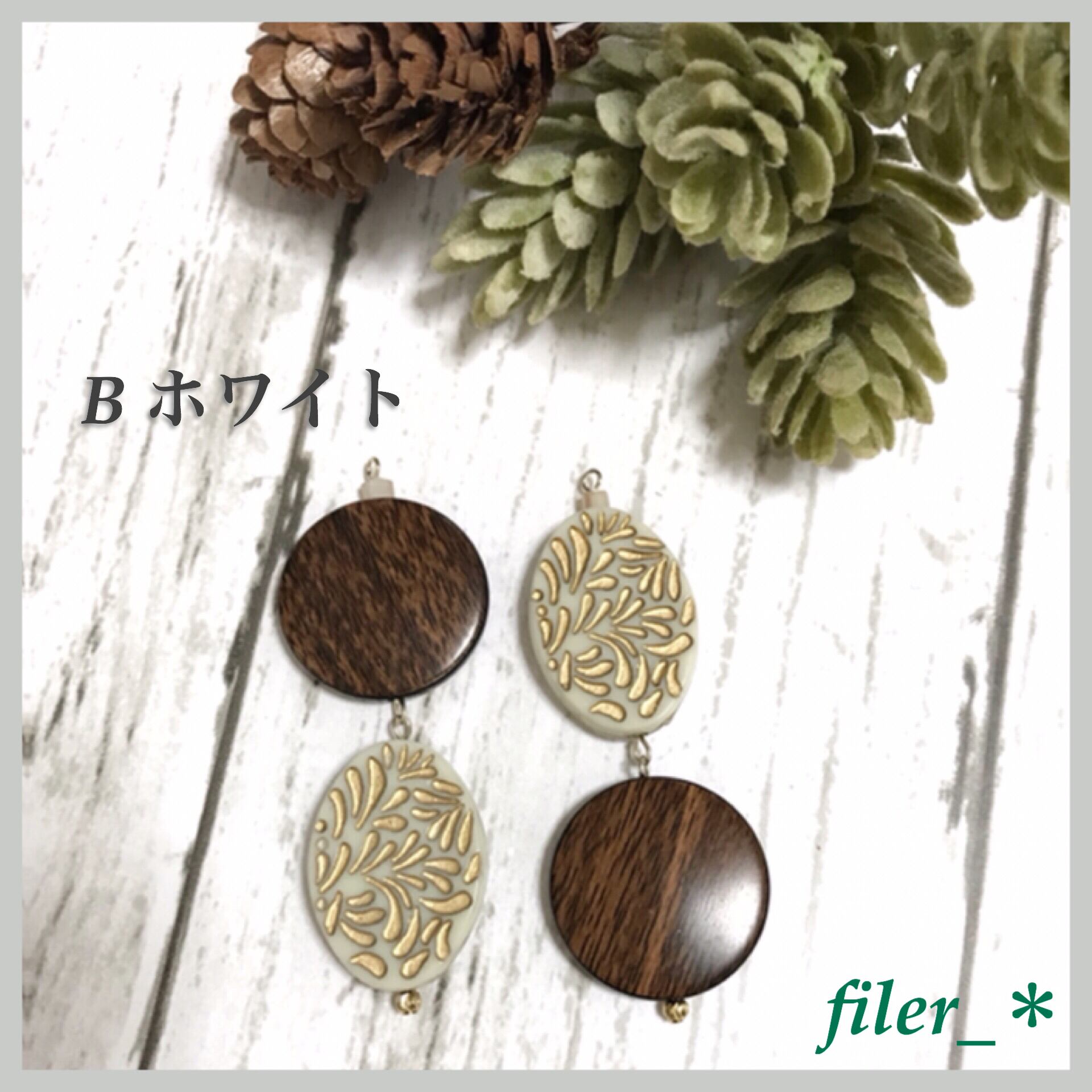 リーフ柄のオーバルパーツとウッドデザイン
