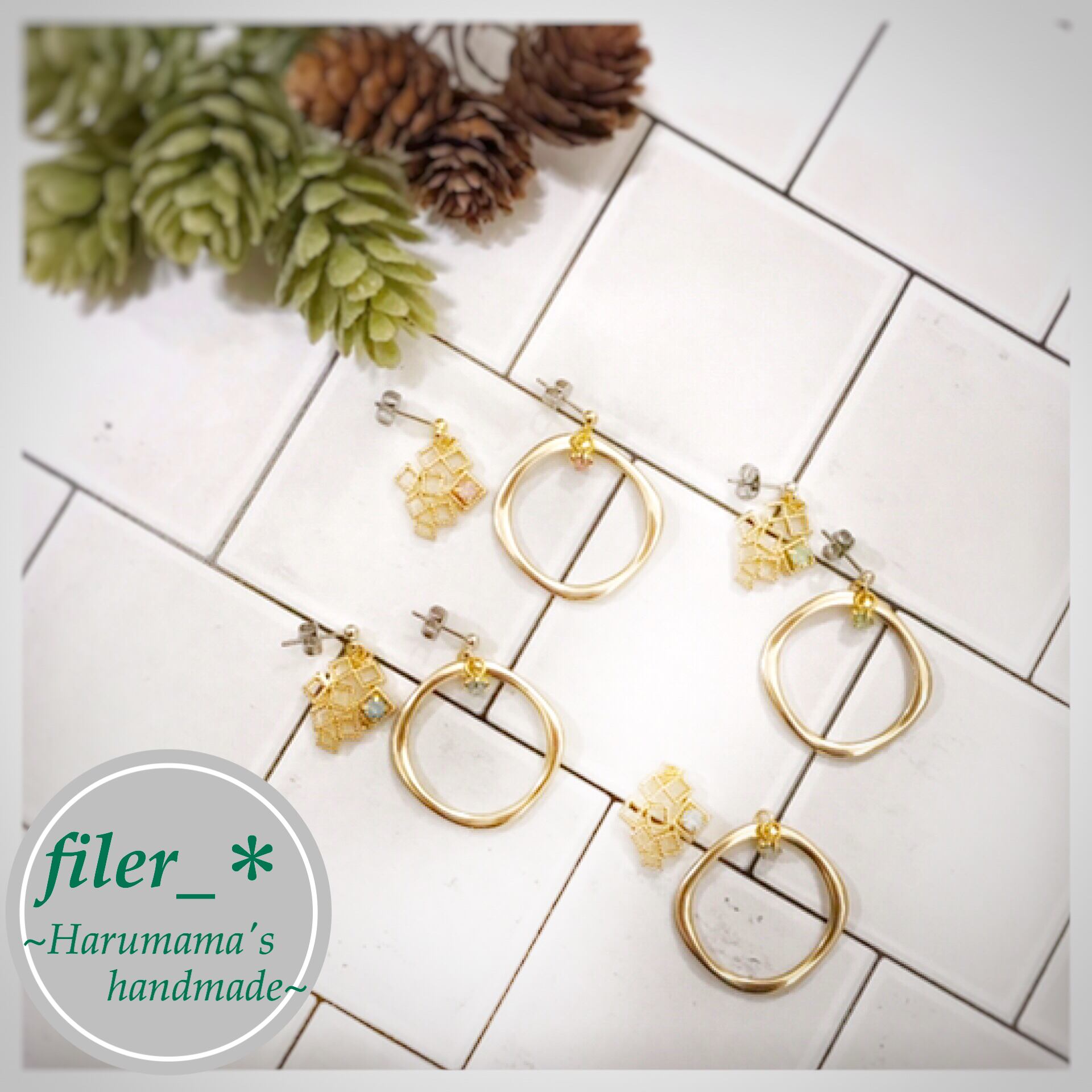 真鍮の上にゴールドのプレートを圧着したものです。金メッキよりも丈夫で、長期間使用しても変色しにくく、金属アレルギーの方にもやさしい素材です。
